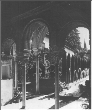 A aragem quente e seca, tendo ganho o acento de rosas ou jasmins conforme passa pelo jardim, é arrefecida pelo íntimo contacto com a água esfuziando em pequenas cascatas ou murmurando em tanques pouco profundos de água corrente. O silêncio de um pátio é acentuado pelo refrescante sussurrar de uma fonte solitária. No seio penumbroso de uma recatada sala, tensos rosários de pérolas de finos repuxos brincam com a luz suave que cai de cima e se reparte sobre a tessitura dos arabescos.