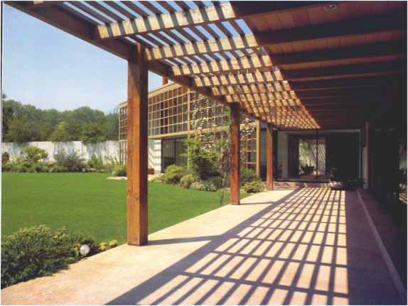 É assim que, no Jardim Islâmico fechado (Figura 53), em que domina a vegetação e a sombra, ao contrário do que acontece no pátio radiativo, a resolução de uma necessidade prática de protecção contra o calor é convertida num prazer para os sentidos e enquadrada numa metáfora do paraíso.