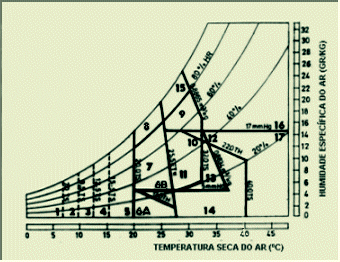 Conforme já foi notado, deve colocar-se entre parentesis a zona de conforto considerada (zona 7 na figura acima), a qual deverá ser decomposta numa zona de conforto de Verão e outra de Inverno para as condições climáticas e exigências que ocorrem no território português.