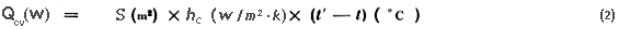 A convecção superficial em paredes, coberturas e pavimentos, como foi referido atrás, é combinada com as trocas radiativas numa resistência superficial que se associa à condutância no coeficiente de transmissão térmica U. Tal como nas trocas de calor por condução, também se pode traduzir estas trocas convectivas numa expressão linear em que, segundo Newton, o fluxo de calor convectado entre o sólido e o fluído (Qcv), varia na razão directa do gradiente de temperatura (t´- t)entre eles e da área superficial do sólido (S), introduzindo um factor de proporcionalidade: o coeficiente de transferência de calor por convecção hc: