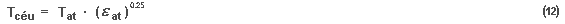 Simplificadamente na eq. (11), a temperatura efectiva do céu é função da temperatura seca do ar Tat e da emissividade