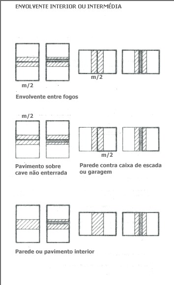 Assim, considerando o regime permanente no Inverno, as perdas por condução (Qc) variam com a diferença de temperatura entre o interior e o exterior (t´- t), com a resistência térmica (R) das paredes e envidraçados, coberturas e pavimentos em contacto com o exterior e, com a respectiva área (S). Teremos então para todo o invólucro: