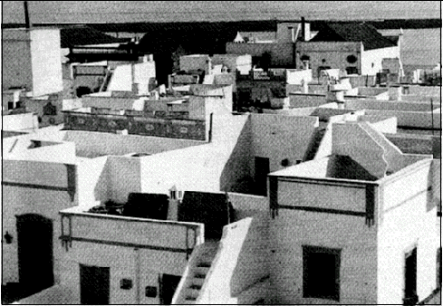 O arrefecimento radiativo de conforto pode ser conseguido em simples terraços, protegidos do vento por muros de acrotério, guardas fechadas ou parapeitos. Estes, em noites quentes e calmas de céu limpo, constituem magníficas salas de estar tendo por tecto a imensa cúpula celeste que proporciona, não só uma agradável sensação de frescura, mas também o surpreendente disfruto do firmamento, como se pode experimentar nas açoteias do levante algarvio (Figura 48).