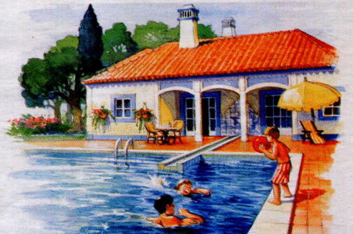 Nos dias de hoje, de forma muito mais prosaica e chã, a publicidade imobiliária combina, muitas vezes, a água com outros meios simples, numa imagem que sugere conforto e bem estar de harmonia com o clima. No exemplo da Figura 55, a água é o motivo central de uma cena familiar que usa uma estereotipada linguagem tradicional.