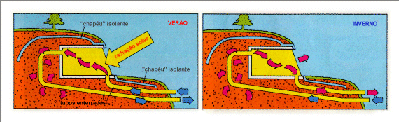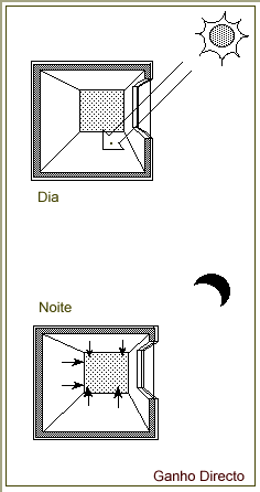 Protegida do sol durante o dia, esta massa térmica acumula o calor recebido do interior, o qual dissipa para o céu, por radiação da face exterior descoberta durante a noite.