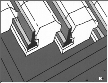 Se o desvão for habitado, o isolamento deve ser colocado na cobertura inclinada. Existem no mercado placas moldadas para assentar sobre esteira e receber as telhas, dispensando o ripado. A Figura 6B reproduz um curioso esquema para telha vã, inserto em publicação da ACEPE (Associação do Controle de Qualidade das Espumas de Poliestireno Expandido), o qual integra uma aba, para a correcção das pontes térmicas.
